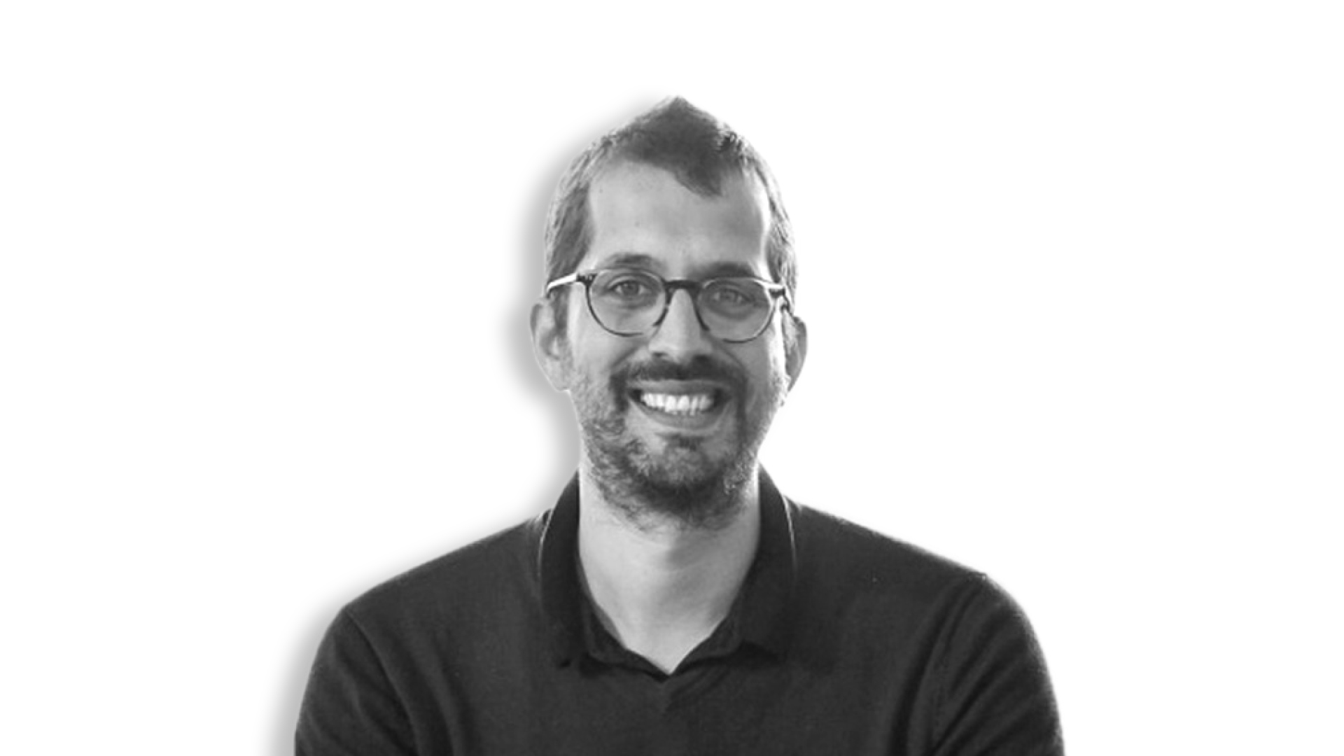Homem sorridente com óculos.