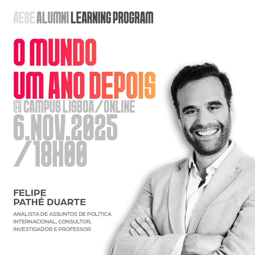 Estas sessões incorporam-se no programa – o Alumni Learning Program. Se tem como propósito manter-se atualizado e desperto para os temas que estão ou estarão na agenda da nossa sociedade, mantenha-se ligado e esteja atento às próximas sessões!